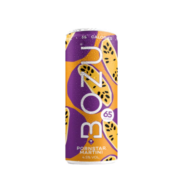 Bozu Pornstar Martini Hard Iced Tea is a vibrant and playful twist on the classic cocktail, bursting with passionfruit and citrus notes. The smooth, light alcoholic base complements the juicy flavor without being too sweet. Served ice-cold, it’s bold, refreshing, and full of tropical character. A fun, flirty drink that brings the party wherever you go!